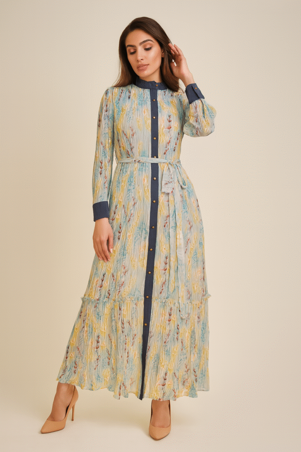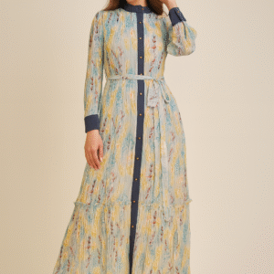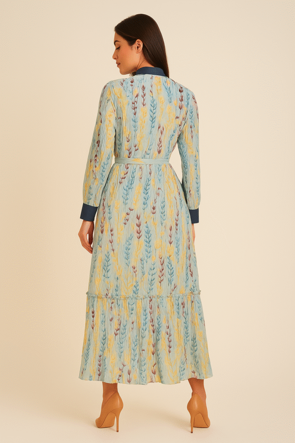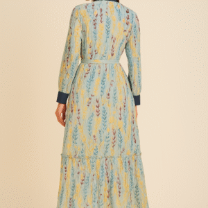 Step into timeless elegance with our Azure Meadow Button-Down Maxi Dress, where comfort meets sophistication. Adorned with delicate botanical prints in serene shades of blue, yellow, and soft crimson, this full-length beauty exudes effortless grace. The contrast indigo button placket and cuffs add a touch of structure, while the tie-up waist flatters your silhouette. Perfect for a brunch date, a holiday stroll, or a serene day out, this dress is designed to make you feel confident, radiant, and unforgettable.