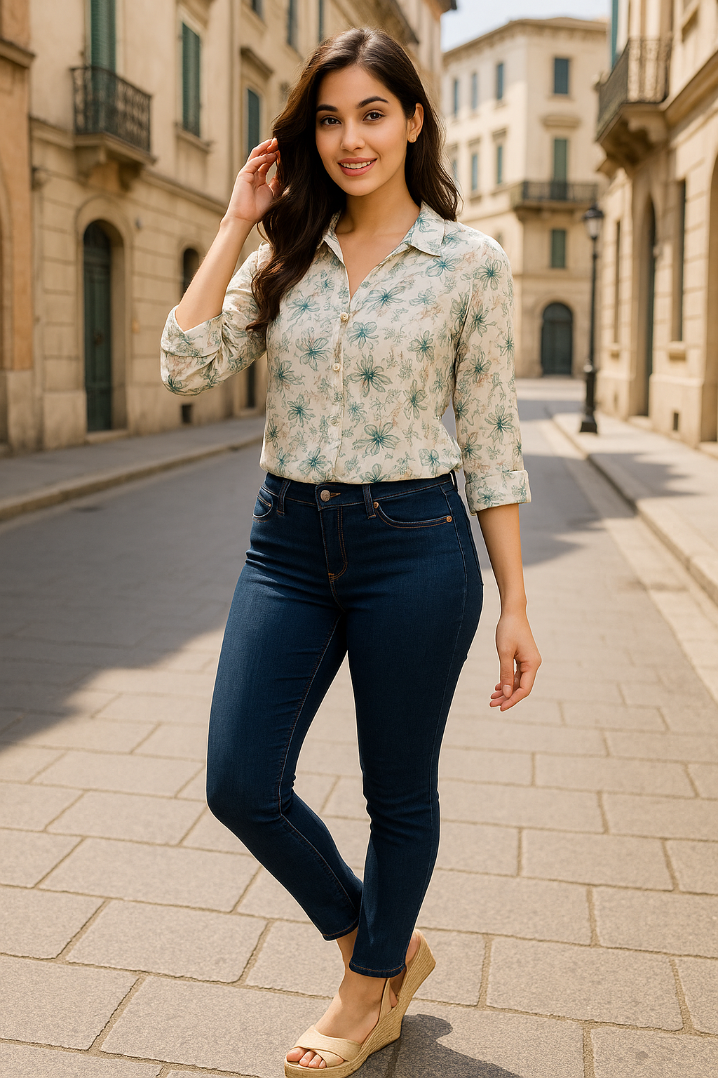 π Elevate with wedges or nude heels for refined charm