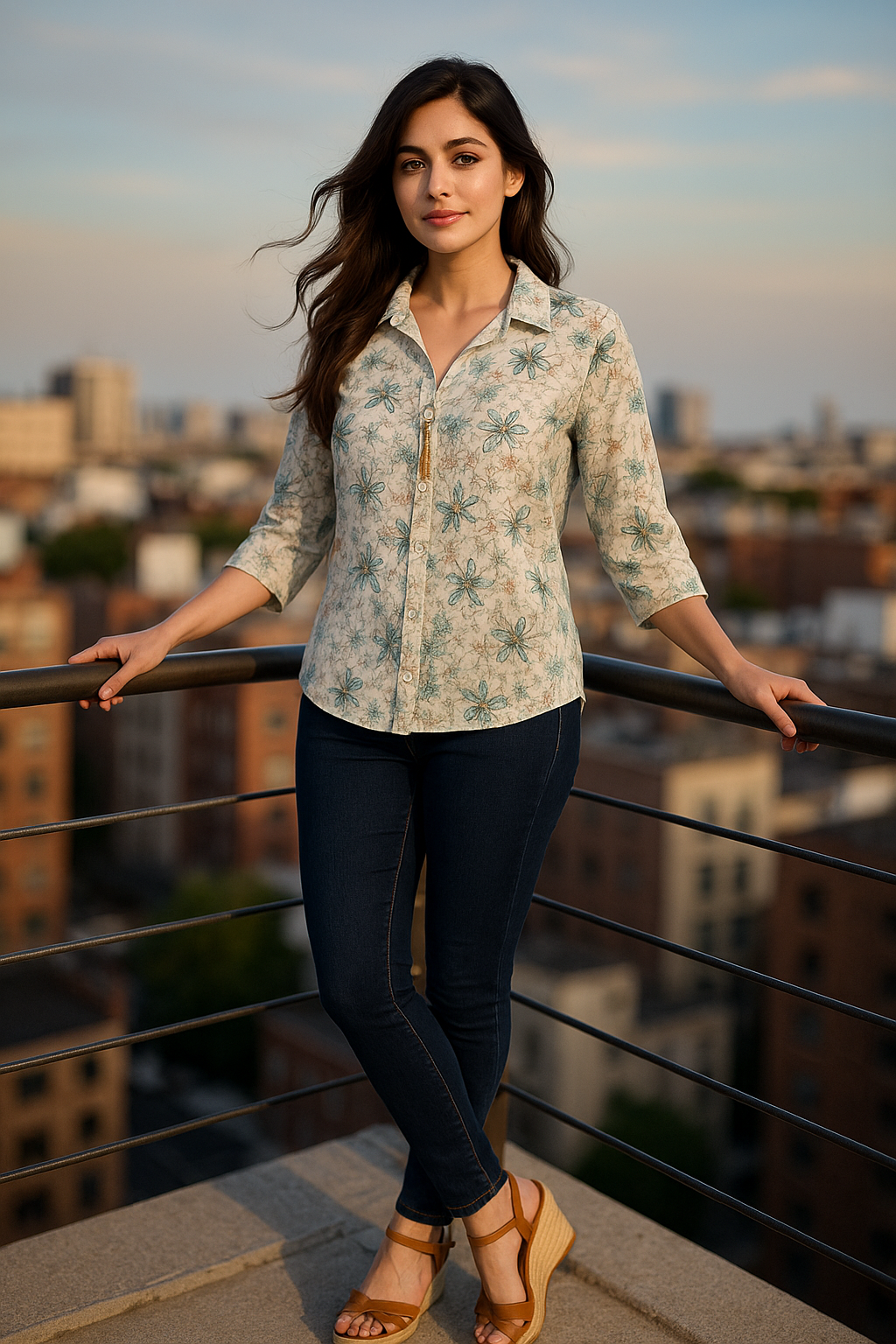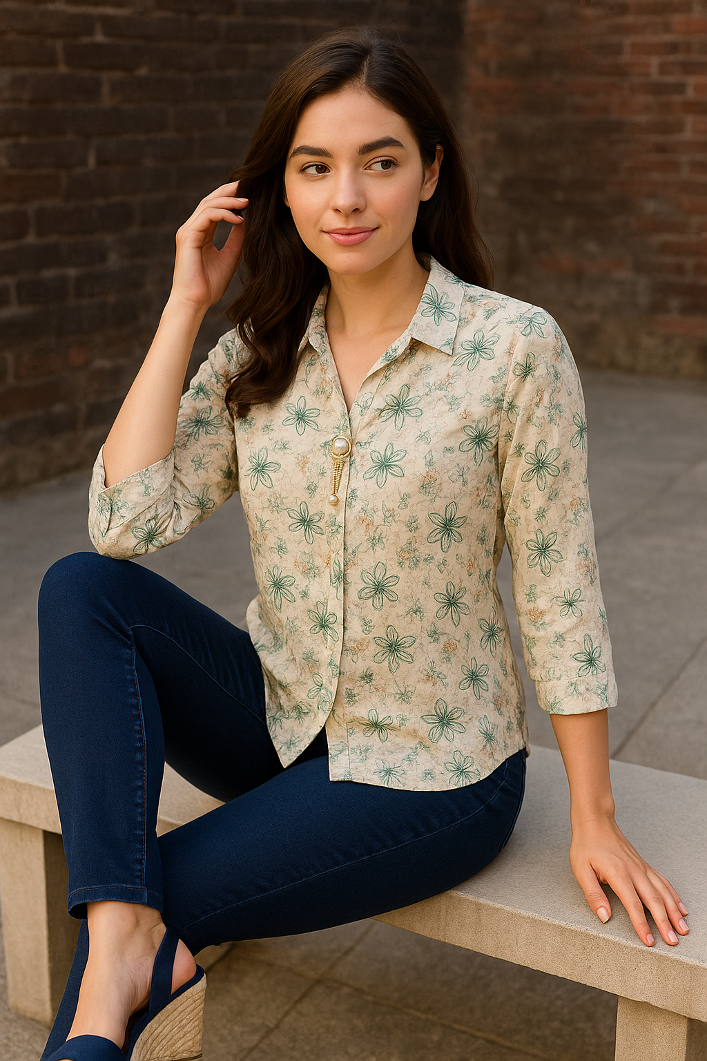 Unveil your soft, feminine charm with the Blooming Grace β Pastel Floral Top. Designed with soothing beige tones and delicate green floral prints, this top is a seamless blend of comfort and elegance. The collared neckline, 3/4th sleeves, and pearl-drop button accent at the placket add a refined touch, making it perfect for women who love everyday sophistication. Pair it effortlessly with denims, trousers, or skirts for versatile styling that transitions beautifully from day to evening.