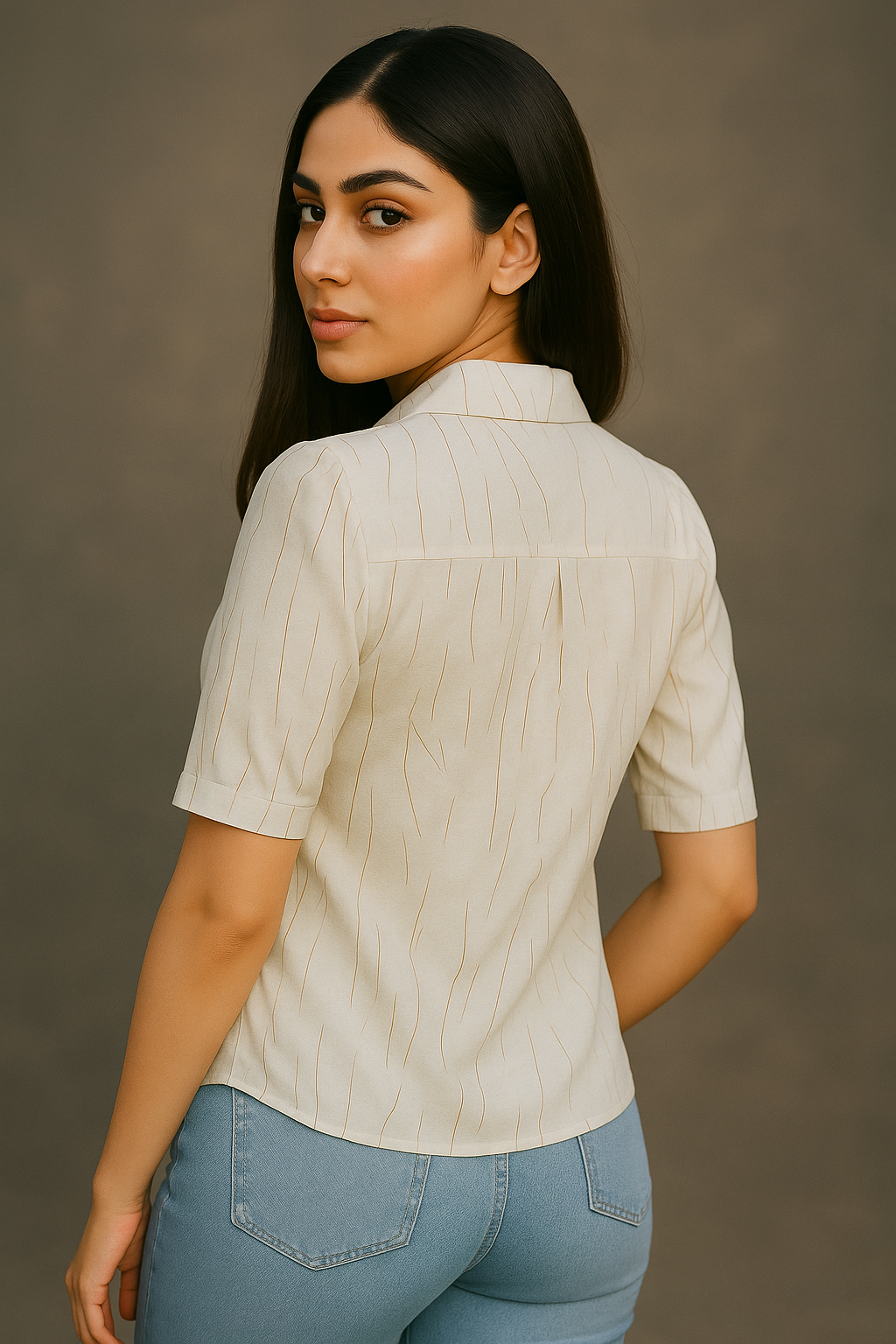 Elevate your wardrobe with our Classic Beige Textured Top, which gives you a classy look of a shirt, where timeless tailoring meets subtle sophistication. Crafted from soft, breathable fabric with delicate vertical streak patterns, this piece is perfect for both casual outings and semi-formal affairs.