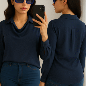 π― Flattering Fit β Draped neckline with structured collar for a modern silhouette.