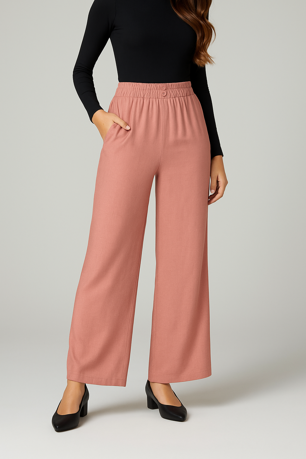 Elegant High-Waist Wide-Leg Premium Linen-Blend Fabric Pants – Dusty Rose Comfort Fit
