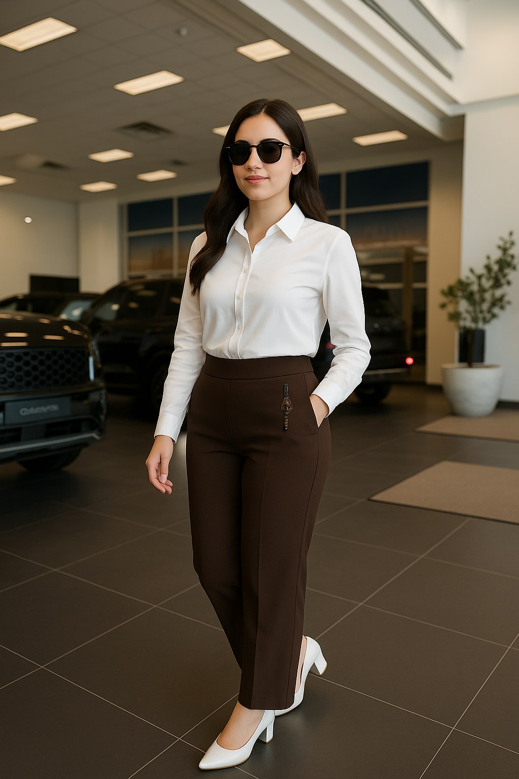 Redefine sophistication with the Mocha Luxe Straight-Leg Pants, a wardrobe essential for the modern, confident woman. Designed in a rich mocha brown hue, these pants feature a high-waist tailored cut that flatters the silhouette while offering all-day comfort. The minimalistic design is elevated with a subtle tassel charm detail, making it versatile for both professional and semi-formal settings. Pair it with your favorite shirts or blouses for a refined, put-together look every time.