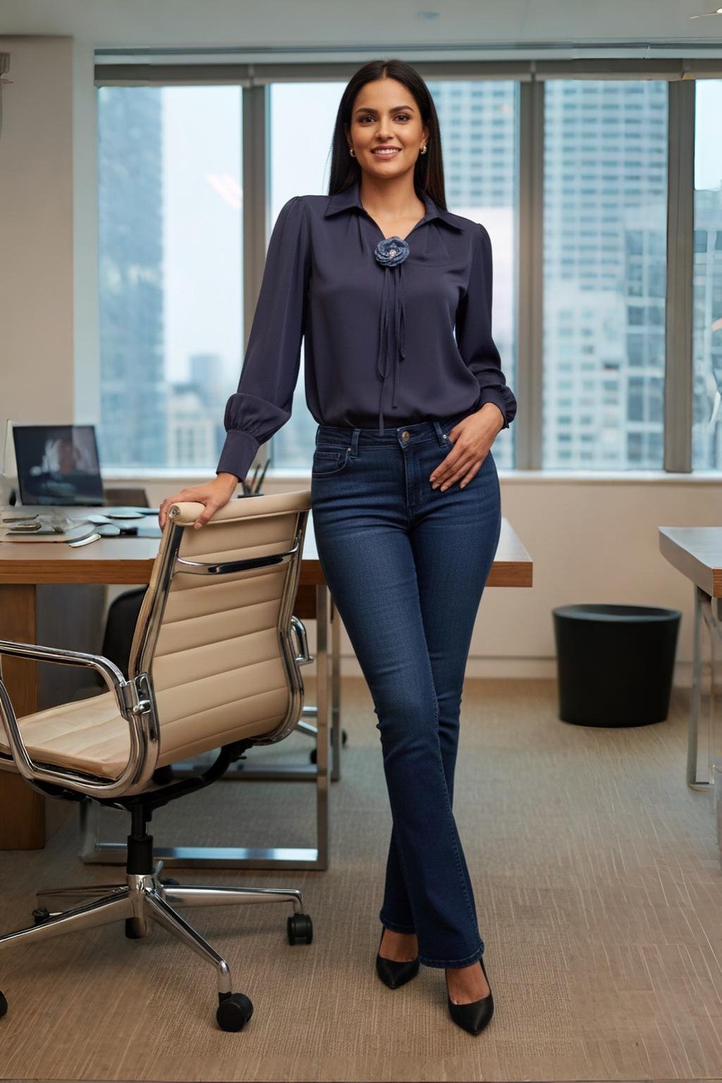 Step into effortless elegance with the Midnight Bloom Navy Top, crafted to blend sophistication with versatility. Designed in a timeless navy hue, this premium blouse features delicate tailoring, a graceful neckline detail, and flowing long sleeves. Whether styled for an empowering office look or elevated for an evening out, this women’s top strikes the perfect balance of modern chic and classic refinement.