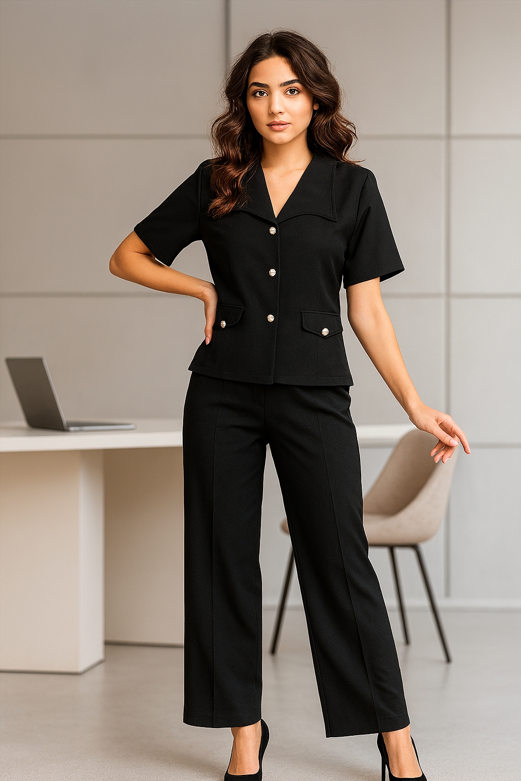 Step into effortless sophistication with our Noir Charm co-ord set β a perfectly tailored blend of elegance and functionality. Designed in a deep, timeless black, this coordinated ensemble offers a structured yet comfortable fit, making it your go-to outfit for both boardroom confidence and after-hours elegance. The minimalist silhouette ensures versatility, while the premium imported fabric drapes beautifully, enhancing your natural poise. Whether styled for a high-powered meeting or an elegant dinner, this set is a wardrobe investment in refined style.