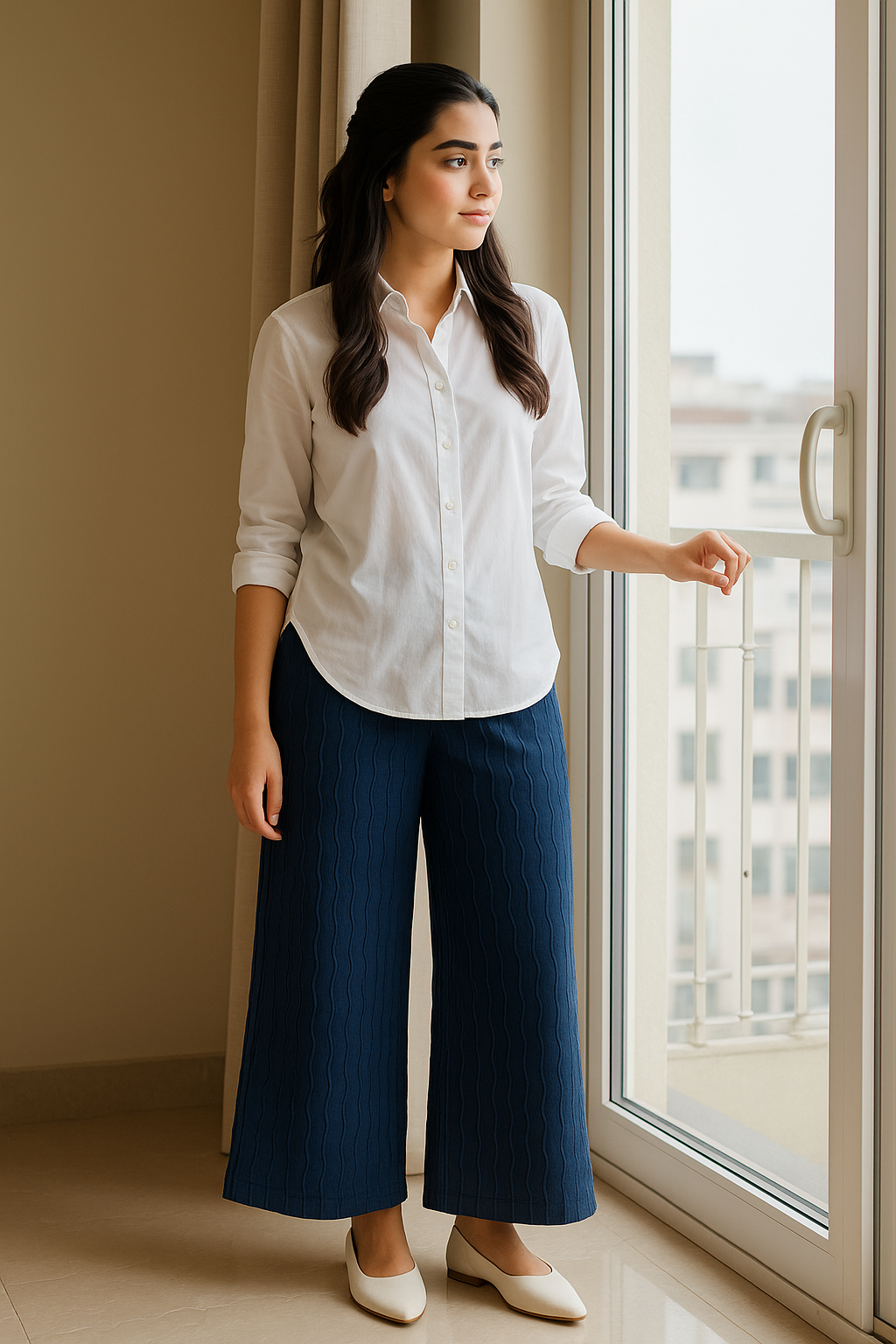 Step into effortless style with the Ocean Breeze Navy Blue Wide-Leg Pants β the perfect blend of elegance and ease. Crafted for the modern woman, these pants feature a flowy silhouette and a textured wave pattern that adds subtle sophistication. The adjustable drawstring waist offers comfort without compromising style, making them a versatile staple for both laid-back and polished looks. Whether strolling through the city, traveling, or enjoying a weekend brunch, these pants are your go-to for chic comfort.