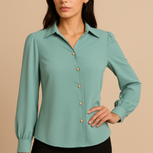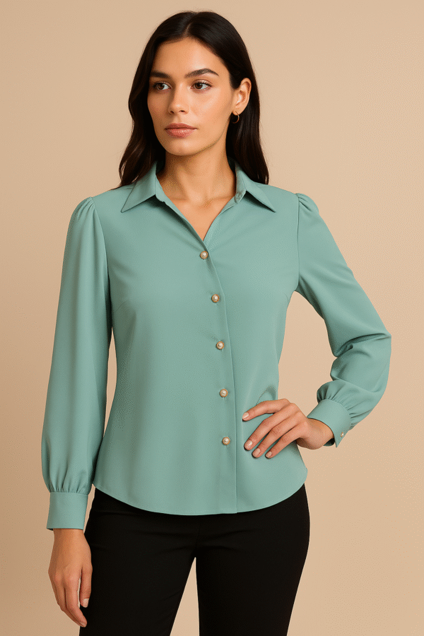 Step into effortless sophistication with our Serene Luxe Button-Down, a versatile wardrobe essential designed for the modern woman. Featuring a sleek silhouette, gold-tone buttons, and a soft drape, this shirt transitions seamlessly from boardroom meetings to sunset gatherings. The refined collar, clean lines, and rich pastel hues exude understated luxury, making it perfect for both professional and casual-chic ensembles.